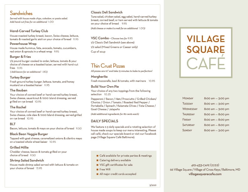 Welcome to Village Square Cafe, a charming gem nestled in the heart of Baltimore at 66 Village Square. This delightful cafe is a beacon for those seeking a cozy spot to enjoy mouthwatering comfort food, whether you’re popping in for breakfast, lunch, or just a refreshing coffee break.